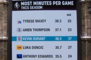 杜兰特,36.5分钟,37岁