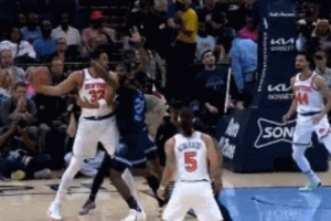 GIF-唐斯遭遇包夹 脑后传球助攻沙梅特上篮命中